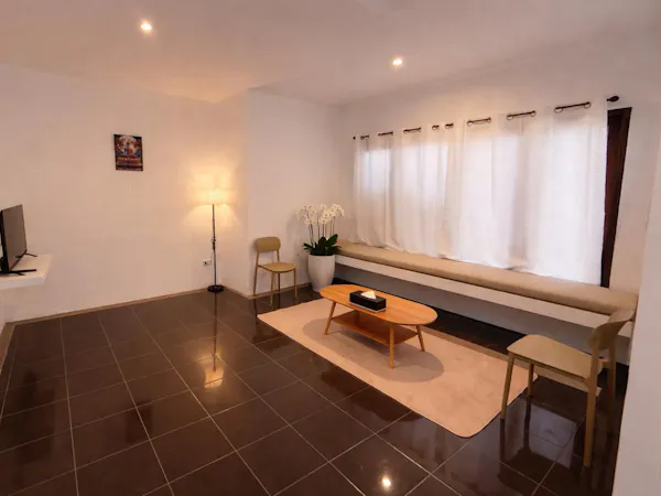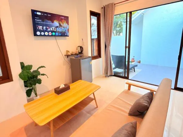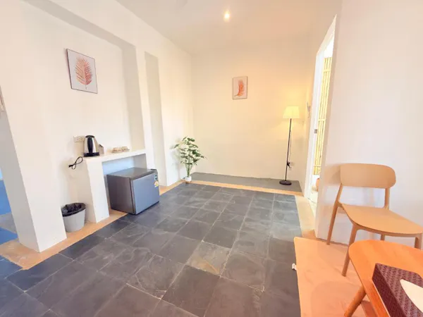 Deluxe double room with one living room, one bed room and one en suite private bathroom.